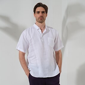 Per uomo camicia di lino Camicia con colletto a fascia Maglietta informale Liscio Da mare Hawaiano Nero Bianco Giallo Rosa Manica corta Henley Primavera estate Abbigliamento Tasca frontale