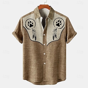 Per uomo Camicia camicia di lino camicie retrò Camicia d'epoca Camicia etnica Occidentale Esterno Ufficio Blu Verde Kaki Manica corta Collo ripiegabile Estate Primavera Abbigliamento