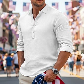 Per uomo Camicia camicia di lino Camicia estiva Camicia da spiaggia Camicia con bottoni Camicia di cotone Liscio Informale Giornaliero Bianco Manica lunga A fascia Primavera estate Abbigliamento