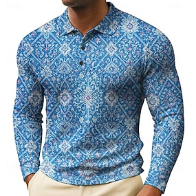 Per uomo Tribale Polo Maglia da golf Manica Lunga Magliette polo Camicie con Colletto Vintage Casual Abbigliamento da vacanza Abbigliamento da festa Abiti da festa Stampa 3D Bottoni Blu marino Blu