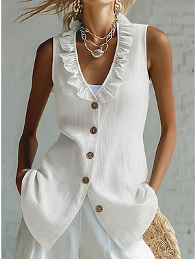 Per donna Maglietta Finto cotone e lino Volant Semplice Moda Elegante Classico Senza Maniche Scollo a V Top Regolari Quotidiano Uscire Weekend Blu Nero Bianco Vino Viola Estate Primavera