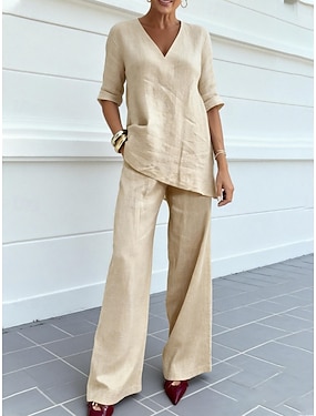 Per donna Set di Pantaloni Bolero Top Finto cotone e lino Manica Lunga Scollo a V Tinta unica Moda Streetwear Casuale Quotidiano All'aperto Blu Nero Bianco Estate Vestibilità comoda
