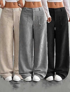 Per donna Culotte Gamba Larga Chinos Streetwear Casual Lunghezza intera Vita media Semplice Tasca Elastico in vita Confortevole Inelastico Quotidiano All'aperto Vacanza Aalbicocca Grigio Blu marina