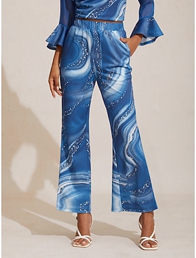 pantaloni a gamba larga in chiffon fluidi, perfetti per un look tropicale.