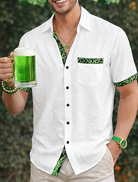 camicia da uomo, camicia di lino, camicia estiva per il giorno di San Patrizio, abbigliamento da spiaggia, camicia con bottoni, tinta unita, casual, spiaggia, blu, nero, bianco, rosa, manica corta,