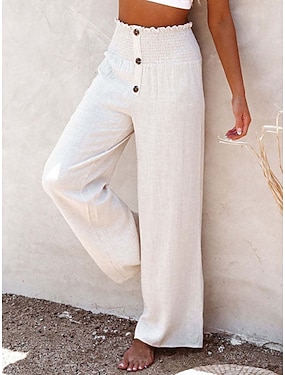 Per donna Gamba larga Chinos Moda Streetwear Lunghezza intera Vita Alta Semplice Tasca Fascia Elastica Comodo Morbido Confortevole Micro-elastico All'aperto Streetwear Nero Verde Albicocca Estate