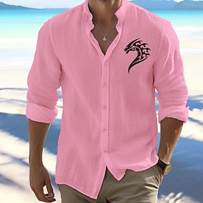 Per uomo Camicia Camicia da Spiaggia Camicia con Bottoni Vichingo All'aperto Vacanza Nero Bianco Rosa Arancione Manica Lunga Colletto Mao Primavera & Autunno Abbigliamento Stampato
