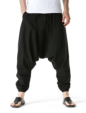 Per uomo Harém Pantaloni di lino Pantaloni Pantaloni estivi Pantaloni larghi A cordoncino Cavallo basso Liscio Lunghezza intera Informale Giornaliero Stile etnico Boho Morbido Nero Blu marino