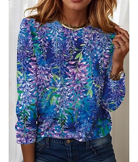 Maglietta da donna a maniche lunghe con scollo tondo tunica floreale casual top regolari stampa quotidiana perla primavera autunno