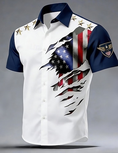 Per uomo 4 luglio, 250° anniversario degli Stati Uniti Aquila Bandiera degli Stati Uniti Camicia Camicia con Bottoni Manica Corta Patriotico All'aperto Ferie Estate Primavera Collo ripiegato Stampa