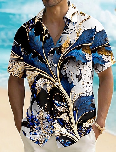 Per uomo Illusione ottica Piante Foglia tropicale Camicia Camicia hawaiana estiva Camicie tropicali Manica Corta Hawaiano Vacanza al Mare Estate Primavera Collo ripiegato Stampa 3D Camicie con bottoni
