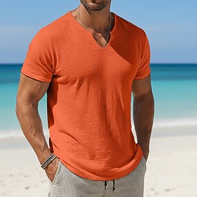 Da uomo Maglietta Maglietta in lino Manica Corta Maniche Corte Scollo a V Estate Semplice Moda Designer Essenziale Morbido Spiaggia Vacanza Casual Quotidiano Rosa Bianco Blu chiaro Maglietta Top per