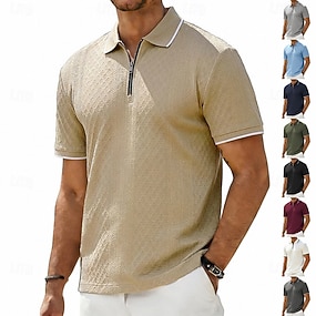 Per uomo Testurizzato Maglia da golf Casuale Lavoro Bavero Zip a un quarto Manica Corta Essenziale Moderno Blocco di colori Cerniera Tasca Estate Primavera Primavera & Estate Vestibilità regolare