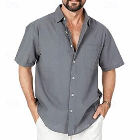 Per uomo Camicia Camicia di lino Camicia casual Camicia con Bottoni Camicia di cotone Semplice Vacanza Streetwear Bianco Manica Corta Collo ripiegato Estate Abbigliamento Bottonato