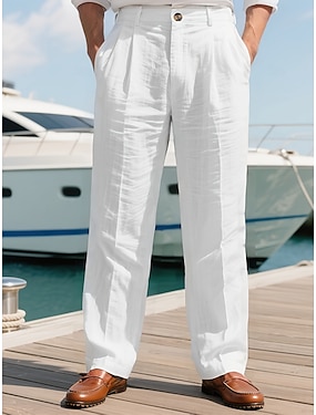 Per uomo Pantaloni di Lino Pantaloni Pantaloni Eleganti Pantaloni Estivi Pantaloni plissettati Tasca Gamba Dritta Semplice Comodità Morbido Formale Affari Casuale Moda Classico Bianco Blu marino