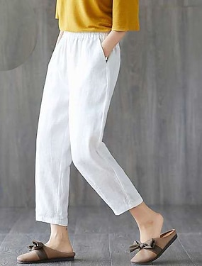 Per donna Normale Chinos Pantaloni Estivi 100% cotone Pantaloni Moda Lunghezza alla caviglia Misura del girovita medio Semplice Tasche Laterali Baggy Comodità Micro-elastico Casuale Lavoro Weekend
