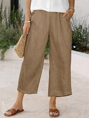 Per donna Pantaloni in cotone e lino Gamba larga Chinos Pantaloni Estivi Vacanza Streetwear Essenziale Lunghezza intera Vita media Semplice Tasca Fascia Elastica Comodità Confortevole Inelastico