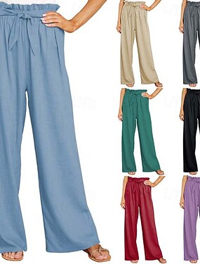 Per donna Misto cotone Finto cotone e lino Gamba larga Chinos Vacanza Streetwear Essenziale Lunghezza intera Vita media Semplice Tasca Elastico in vita Comodo Traspirante Micro-elastico Quotidiano