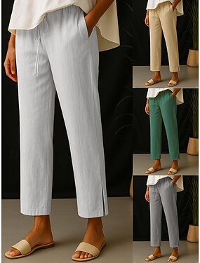 Per donna Finto cotone e lino Gamba larga Chinos Pantaloni Estivi Vacanza Streetwear Casual Lunghezza intera Vita media Semplice Coulisse Tasca Traspirante Micro-elastico Quotidiano All'aperto