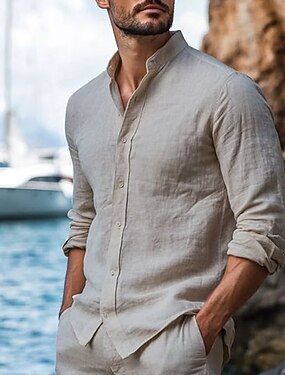 10% Lino Per uomo Camicia camicia di lino Nero Bianco Rosa Manica lunga Tinta unica A fascia Strada Giornaliero Abbigliamento