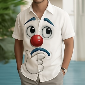 Per uomo Burlone Pagliaccio Faccia Sorridente Camicia Camicia con Bottoni Manica Corta Divertente All'aperto Ferie Estate Primavera Collo ripiegato Stampa 3D camicie con colletto Bianco 1 Bianco