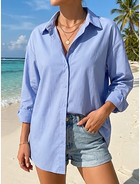 Per donna Camicia di lino Finto cotone e lino Bottoni Semplice Moda Elegante Classico Manica Corta Manica Lunga Girocollo Top Regolari Quotidiano Uscire Weekend Blu Bianco Giallo Rosa Blu marino