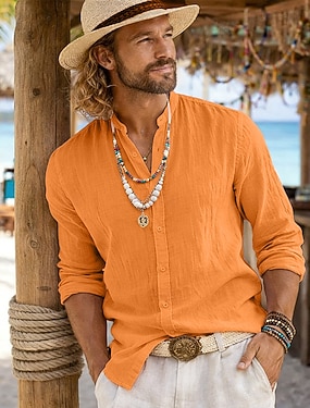 Per uomo Camicia di lino Camicia popover Camicia casual Camicia da Spiaggia Camicia con colletto alla coreana Semplice Spiaggia Vacanza Nero Bianco Rosa Arancione Manica Lunga Collo alla coreana