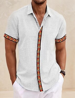 Per uomo Camicia Camicia di lino Camicia in cotone e lino Camicia bianca di cotone Camicia Guayabera Camicia Estiva Semplice Vacanza Casuale Nero Bianco Blu Verde Manica Corta Bavero Estate