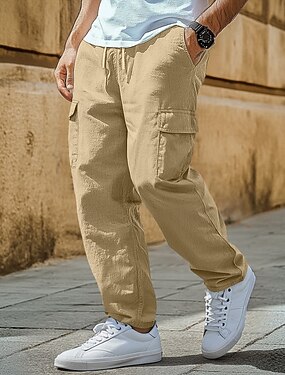 Per uomo Pantaloni Cargo Pantaloni di Lino Pantaloni Estivi Pantaloni casual Coulisse Elastico in vita Multi-tasche Semplice Comodità Traspirante Lunghezza intera Casuale Quotidiano Ferie Vacanza Moda