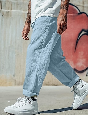 Per uomo Pantaloni di Lino Pantaloni Pantaloni Estivi Pantaloni Larghi Pantaloni da Spiaggia Coulisse Elastico in vita Gamba Dritta Tinta unica Semplice Comodità Traspirante Lunghezza intera