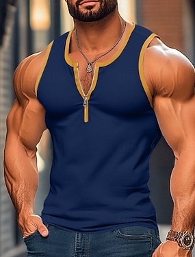Per uomo Canotta Gilet Canottiera Maglietta senza maniche Senza Maniche Collo a U Estate Blocco di colori Patchwork Moda Classico Confortevole Cerniera Streetwear Casuale Sportivo Nero Bianco Blu