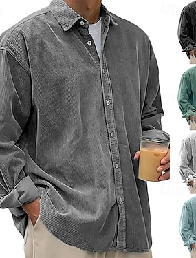Per uomo Camicia Camicia casual Camicia di Velluto a Coste Camicia con Bottoni Nero Bianco Blu marino Blu Viola Manica Lunga Collo ripiegato All'aperto Streetwear Abbigliamento Vintage Casual