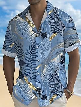Per uomo Foglia Camicia Aloha Manica Corta Hawaiano Vacanza Estate Primavera Collo ripiegato Cardigan con Bottoni Bianco Blu Verde