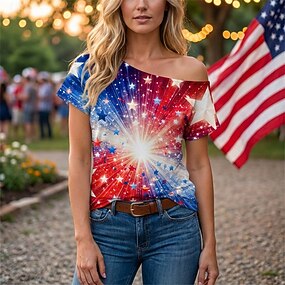 250° anniversario USA Retrò Vintage Anni '80 T-shirt Monospalla Maniche corte Costume Per donna 4 Luglio Giorno dell'Indipendenza Adulti Maglietta