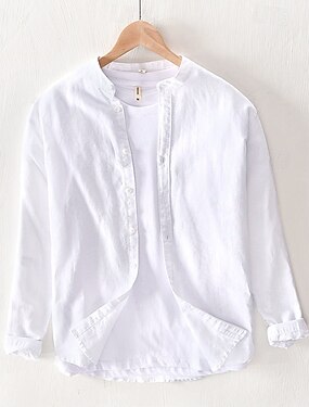 Per uomo Camicia Camicia di lino Camicia casual Camicia con Bottoni Camicia di cotone Semplice Vacanza Camicia hawaiana Bianco Blu marino Cachi Grigio Manica Lunga Colletto alla coreana Primavera