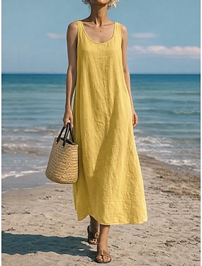 Per donna Abito maxi Finto cotone e lino Abito a Tubino Abito Estivo Abito Sottoveste Casual Spiaggia Quotidiano Vestibilità comoda Semplice Senza Maniche Collo a U Blu blu navy Giallo Rosso Estate