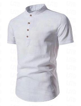 Per uomo Camicia di lino Camicia Estiva Camicia da Spiaggia Camicia in cotone e lino Canotta Tinta unica Vacanza Casuale Bianco Verde scuro Kaki Manica Corta Senza colletto Abbigliamento