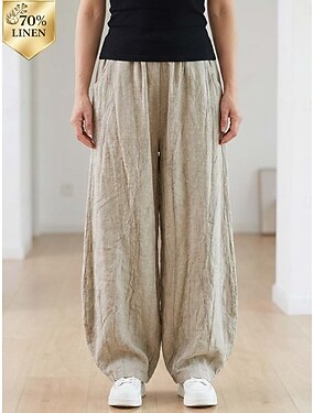 Per donna Pantaloni in cotone e lino Chinos Pantaloni Estivi Pantaloni harem Essenziale Casual Lunghezza alla caviglia Vita media Semplice Tasca Fascia Elastica Comodo Comodità Inelastico Quotidiano