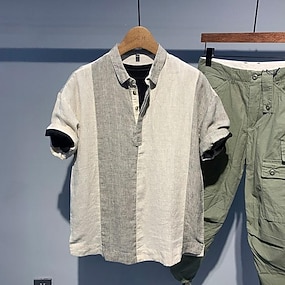 Per uomo Camicia Camicia di lino Camicia casual Camicia con Bottoni Camicia di cotone Blocco di colori Vacanza Streetwear Albicocca Manica Corta Colletto alla coreana Estate Abbigliamento Splice