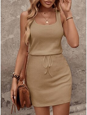 Per donna Mini Abito Vestito Casual Vestito Canotta Elegante Moda Moderno All'aperto Vacanza Uscire Vestibilità regolare Semplice Senza Maniche Collo quadrato Blu Nero Bianco Rosa Estate Primavera