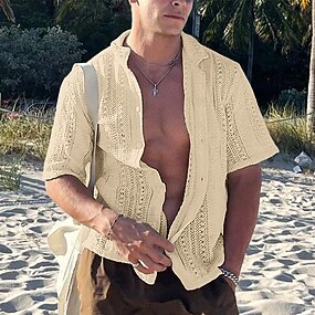 Per uomo Camicia Camicia casual Camicia con Bottoni Nero Bianco Giallo Albicocca Grigio Manica Corta Semplice Collo ripiegato Casuale Quotidiano Traforato Abbigliamento Elegante Moda Casual Spiaggia
