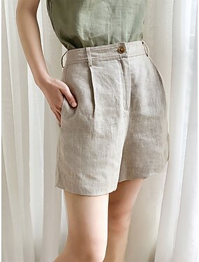 Per donna Finto cotone e lino Chinos Shorts Pantaloncini Estivi Vacanza Streetwear Casual Corto Vita media Semplice Tasca Comodo Traspirante Inelastico Quotidiano All'aperto Vacanza Bianco Mandorla