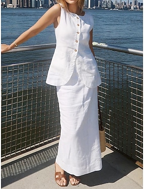 Per donna Set da due pezzi Set di gonne Finto cotone e lino Senza Maniche Dolcevita Collo quadrato Semplice Elegante Moda Streetwear Casuale Quotidiano All'aperto Nero Bianco Beige Estate Vestibilit