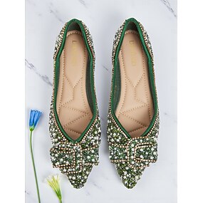 scarpe basse da donna con perle e strass verdi - scarpe eleganti slip-on a punta con dettaglio fibbia per cocktail party &eventi serali