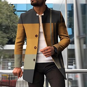 Per uomo Blocco di colori Geometrico Giacca blazer Cappotto Confortevole Traspirante Artistico Casual Quotidiano Abbigliamento da sera Casual Tasca Stampa 3D Bottoni Tutte le stagioni Dentellato