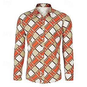 Retrò Vintage Anni '70 Camicia Camicia Aloha Lunghe Hippie Geometrico Costume Per uomo Mascherata Festival Musicale Feste Abbigliamento quotidiano Adulti Camicia
