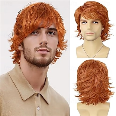parrucca sintetica realistica naturale da uomo, corta, arancione, per uso quotidiano a Halloween