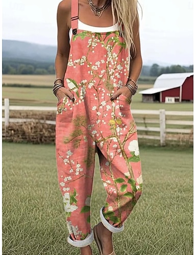 Per donna Tuta Attivo Floreale Senza Maniche Senza maniche Collo quadrato Tasca Stampato Quotidiano Vacanza Vestibilità comoda Blu Rosa Blu Reale Estate