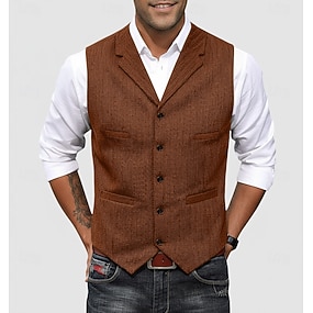 Da uomo Gilet Formale Matrimonio Natale Vacanza Moda Lussuoso Primavera Autunno Tasca Bottoni Lana Acrilico Confortevole Semplice Spina di Pesce Monopetto Bavero Vestibilità regolare Nero Champagne