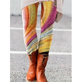Per donna Leggings Leggings comodi Vacanza Vintage Stile Etnico Lunghezza intera Vita Alta Grafico A righe Stampa Comodità Confortevole Elasticizzato Casuale Quotidiano Vacanza Arcobaleno Primavera